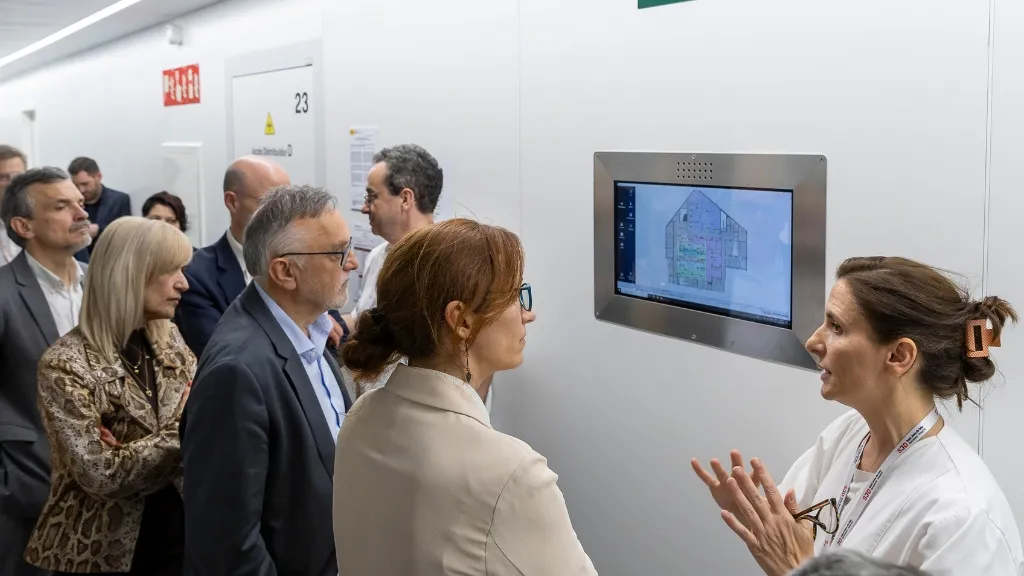 La ruta ha continuado con una parada en el Command Center, un centro de control que ofrece una visión de conjunto y en tiempo real de lo que pasa en cada momento en el Hospital y que ayuda los profesionales a tomar decisiones para gestionar los recursos de manera óptima y evitar saturaciones. A través de pantallas, saben en cada momento cuántos pacientes están siendo operados en los quirófanos, cuántos tendrán que ingresar a la UCI en las próximas horas, cuántos serán trasladados de la UCI a una habitación o cuántos están ingresados en cada planta, entre otras cosas.
