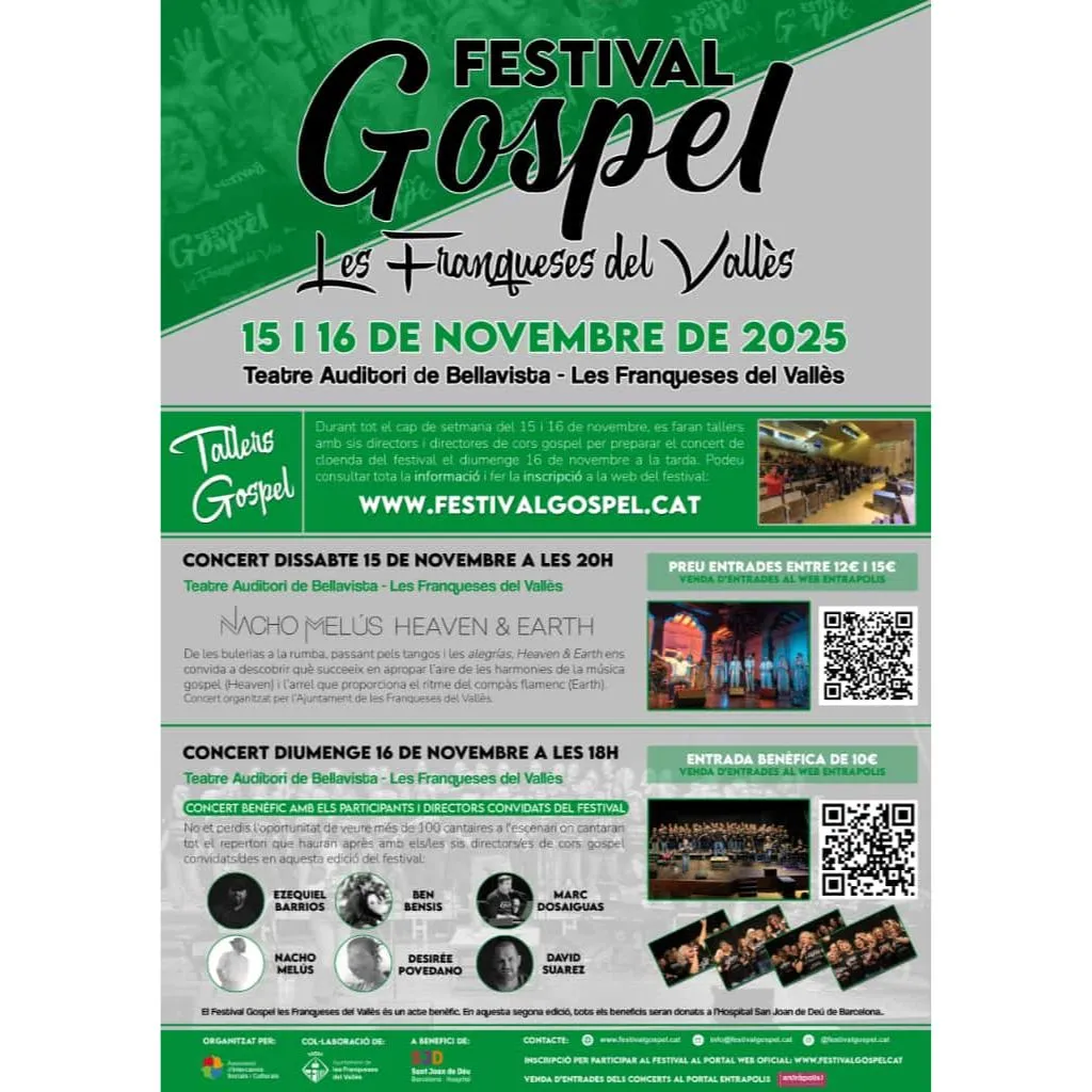 El cap de setmana del 15 i el 16 de novembre, torna el Festival de Gòspel de Les Franqueses del Vallès, que enguany celebra la seva segona edició. Es tracta d'una activitat solidària organitzada per l’Associació d’Intercanvis Socials i Culturals de Les Franqueses del Vallès. En aquesta segona edició del festival, tots els beneficis a es donaran a l’Hospital Sant Joan de Déu de Barcelona. Concretament, la recaptació es destinarà al projecte Hospital Amic.