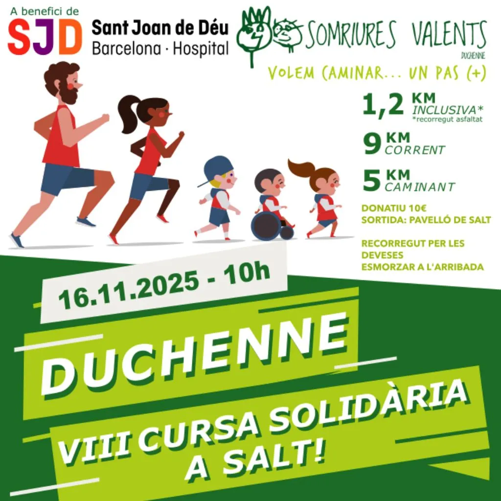 La vuitena edició de la cursa solidària de l'Associació Somriures Valents Duchenne torna amb més força que mai! Carregada d'èxit en les anteriors edicions, aquest esdeveniment tornarà a unir esport i solidaritat per donar visibilitat a les malalties rares infantils i recaptar fons per a la recerca de les distròfies musculars de Duchenne i Becker a l'Hospital Sant Joan de Déu Barcelona.