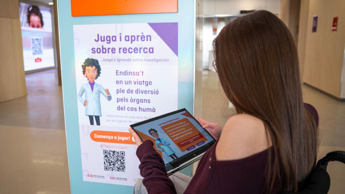 La iniciativa, anomenada “Juga i aprèn sobre recerca”, es troba al vestíbul principal de l’Hospital i combina enigmes, vídeos educatius i descobriments científics.