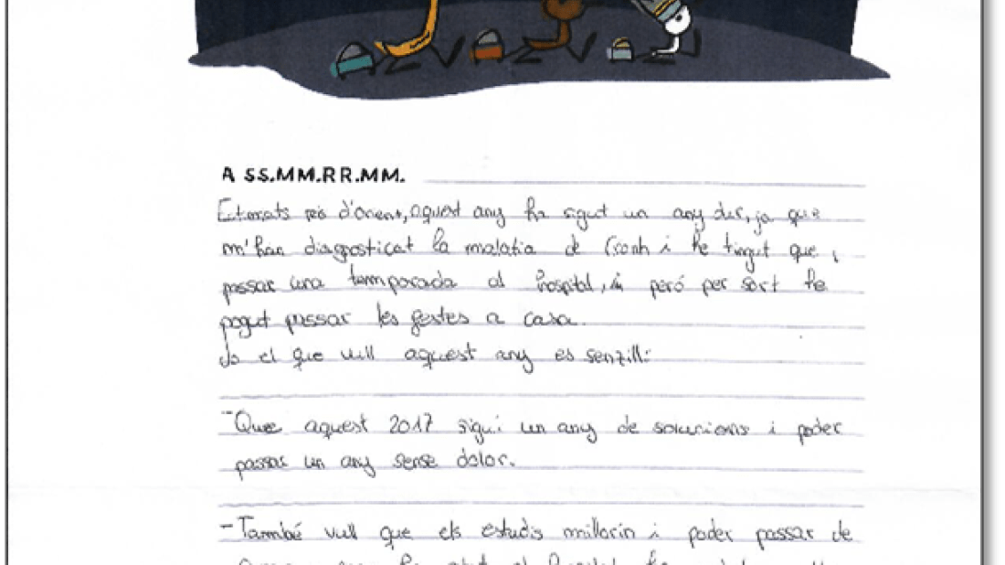 Estimados Reyes de Oriente, este año ha sido un año duro, ya que me han diagnosticado la enfermedad de Crohn y he tenido que pasar una temporada en el Hospital, pero por suerte he podido pasar las fiestas en casa.
