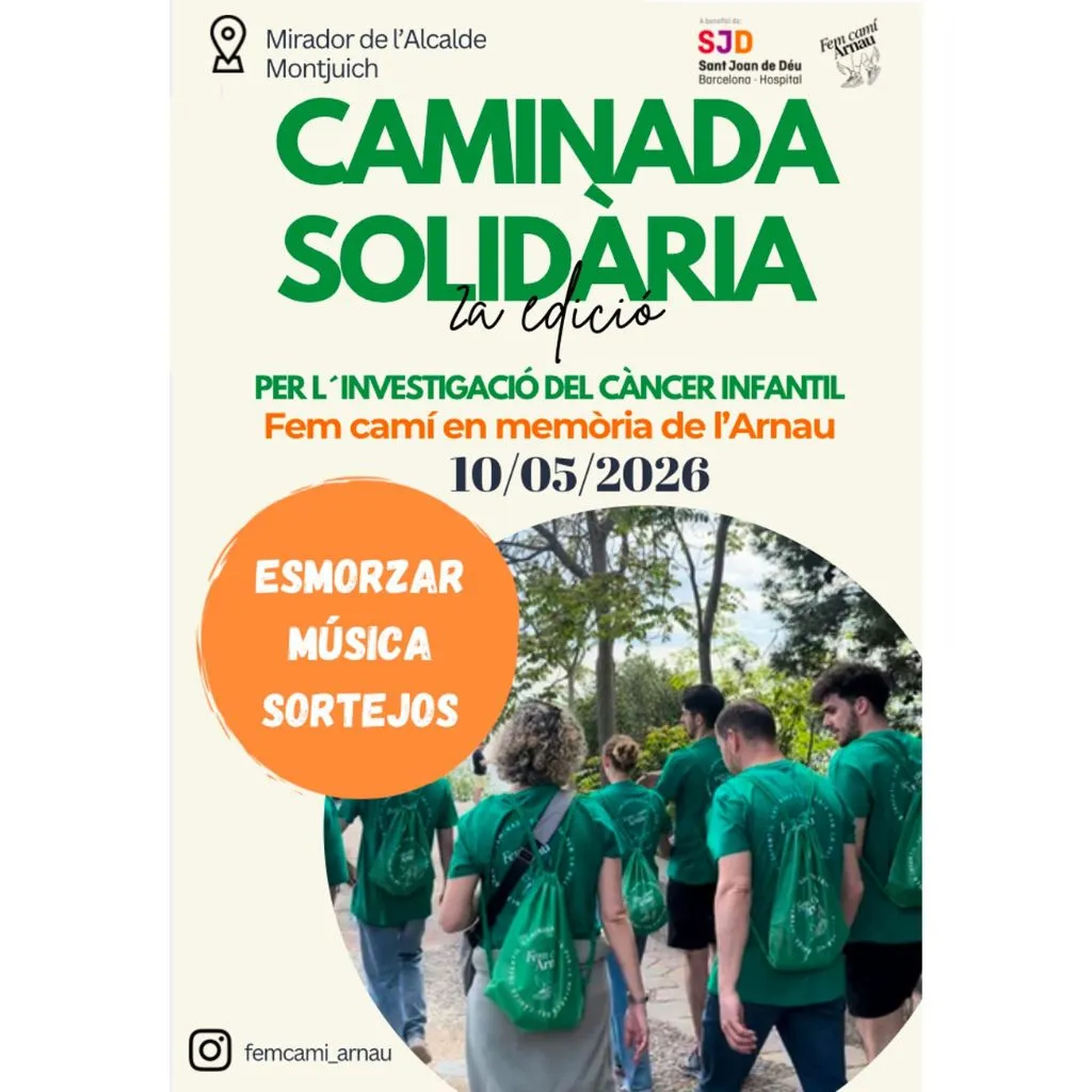 El domingo 10 de mayo, tienes una cita con la lucha del cáncer infantil. La iniciativa Fem Camí, Arnau organiza por segunda vez su caminata solidaria en Montjuïc, en Barcelona. Una cita para recordar a Arnau, un joven que no pudo superar un sarcoma de Ewing. Ahora, su entorno recauda fondos para la investigación oncológica pediátrica que llevamos a cabo en el Hospital Sant Joan de Déu Barcelona para cambiar el pronóstico de todos los niños y adolescentes que se enfrentan a este diagnóstico.