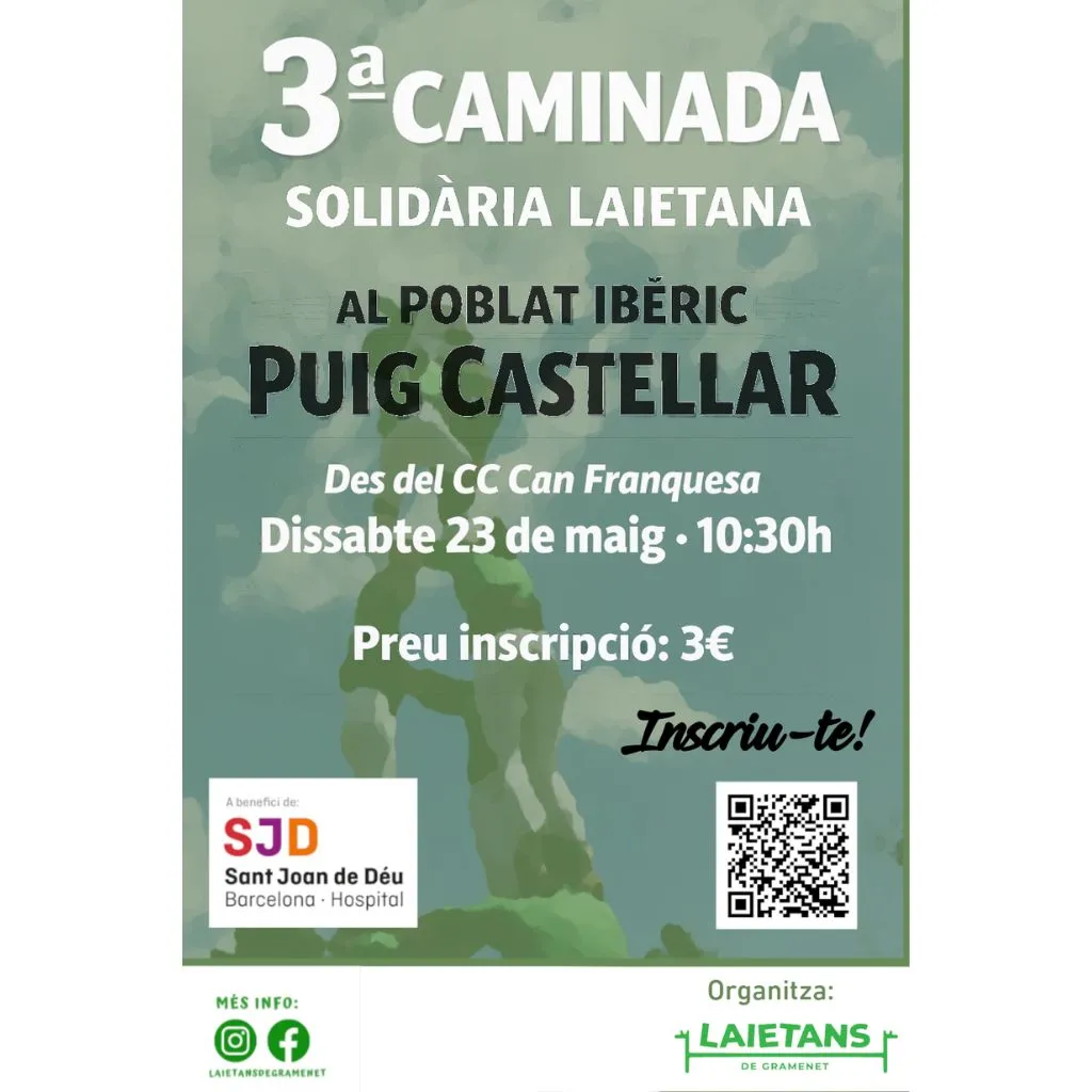 El Poblat Ibèric Puig Castellar dels Laietans i Laietanes de Gramenet vuelve a acoger la caminata solidaria de los castellers Laietans de Gramenet. El próximo sábado 23 de mayo a las 10:30 horas, desde el Centre Cívic Can Franquesa, se iniciará la subida hasta el mirador del pico. Allí, la colla hará un pilar y todas las personas que lo deseen podrán disfrutar de probar a hacer castells. La marcha finalizará en el camino de la Font del Torrent de les Bruixes y tendrá un recorrido total de 3,5 kilómetros. Una caminata popular para toda la familia y para disfrutar de la naturaleza, hacer piña dentro y fuera de la colla castellera.