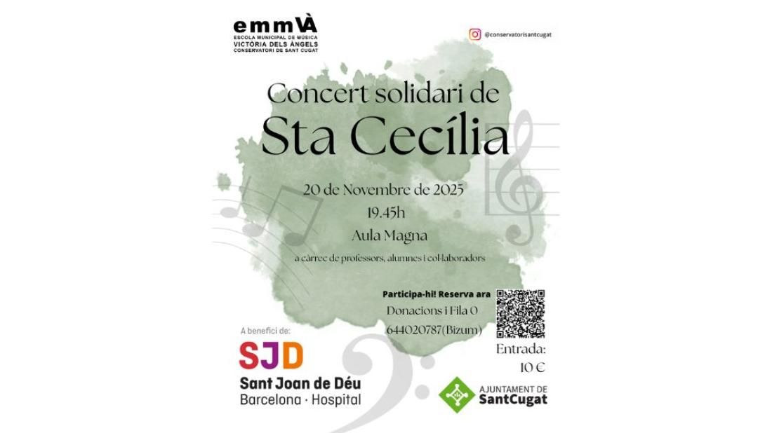El 2025, la Comissió de Santa Cecília de la Escola Municipal de Música Victòria dels Àngels - Conservatori de Sant Cugat celebra su tradicional concierto con un propósito diferente y especial: destinar su recaudación al Hospital Sant Joan de Déu Barcelona. Concretamente, a nuestro programa de cooperación internacional Cuida'm.