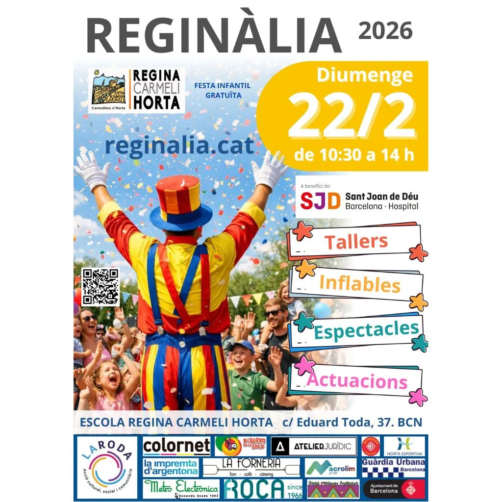 Se trata de la gran fiesta infantil y benéfica que organiza cada año la escuela Regina Carmeli Horta, en el distrito Horta-Guinardó de Barcelona. Un día para descubrir un montón de juegos en familia y actividades para los más pequeños. También, para recordar que la investigación del cáncer infantil puede ser cosa de todos y todas y que juntos, sumamos mucho más. De entrada gratuita, la cita estará llena de talleres, inflables, espectáculos y actuaciones infantiles.