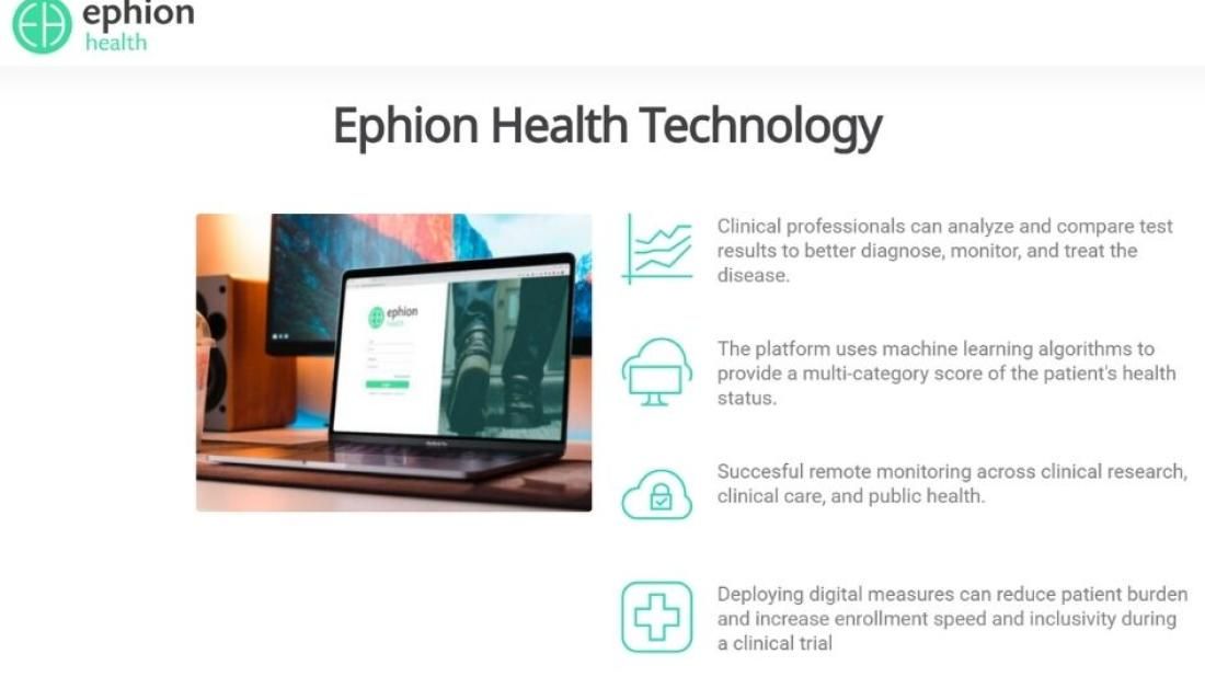 Asimismo, el director de la unidad de Salut Digital de Eurecat y asesor científico de la compañía, Felip Miralles, destaca que mediante la tecnología de Ephion, se conseguiría además acelerar la investigación clínica “facilitando el desarrollo de nuevos fármacos para enfermedades que afectan a la movilidad de los pacientes de forma más rápida y económica”. Por ello, Ephion Health ofrece su plataforma a empresas farmacéuticas para el desarrollo e introducción de puntos finales digitales en sus ensayos clínicos.