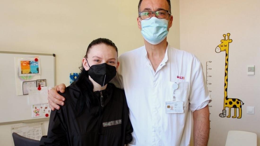 Alazne fue intervenida el día 25 de febrero en una cirugía en la que participaron numerosos profesionales del equipo de Ortopedia y Traumatología Pediátrica (especialistas en patología de rodilla), radiología, enfermería y anestesiología. La intervención se llevó a cabo sin complicaciones, tal y como se había previsto, y Alazne ya puede caminar. Gracias a la cirugía y la rehabilitación, la paciente podrá tener una vida normal sin deterioro de la rodilla ni dolor.
