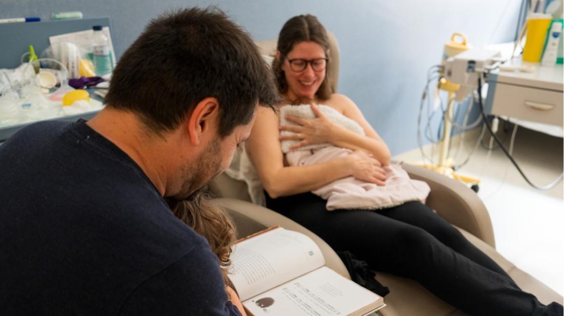 Alba Rivas, neonatóloga de la Unidad de Cuidados Intensivos de Sant Joan de Déu explica que, en los primeros días de vida, muchas familias sienten dificultad para reconocerse en su nuevo rol. Leer a su hijo durante el contacto piel con piel, lo que llamamos método canguro y que hace tiempo que se impulsa desde la unidad, permite reconstruir ese vínculo de forma natural, reduciendo la sensación de vulnerabilidad.