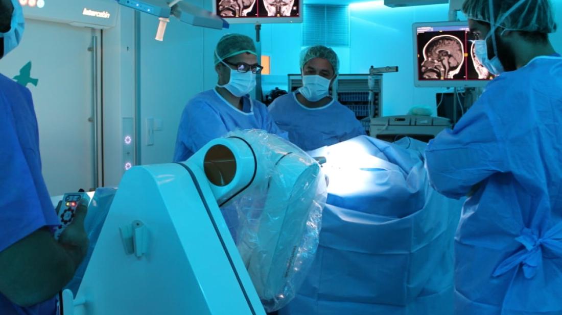 En este tipo de intervenciones, los neurocirujanos realizan una pequeña incisión de 4 milímetros en el cráneo del paciente para introducir, con la ayuda de un brazo robótico, una sonda láser. Guiado por las imágenes de una resonancia magnética integrada en el quirófano, el equipo de cirugía conduce la sonda hasta el foco de la epilepsia.
